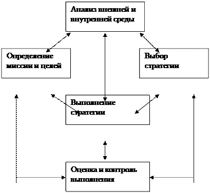 Стратегическое управление можно рассматривать как динамическую совокупность пяти взаимосвязанных управленческих процессов. Эти процессы логически вытекают один из другого. Однако существует устойчивая обратная связь и, соответственно, обратное влияние каждого процесса на остальные и на всю их совокупность. Это является важной особенностью системы стратегического менеджмента.