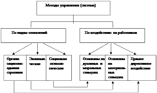 В соответствии с направлениями мотивации, видами отношений и формами воздействия методы управления условно подразделяются на три укрупненных класса: