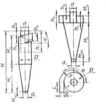 | Высота конуса циклона, Нк | 2,0 | 1,50 | 1,75 | 2,0 |