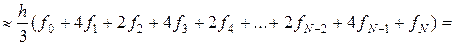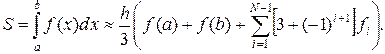 Точность вычисления. Как следует из построения квадратурные формулы Симпсона дают точный результат интегрирования для функций, имеющих вид квадратичной параболы на сдвоенном участке [