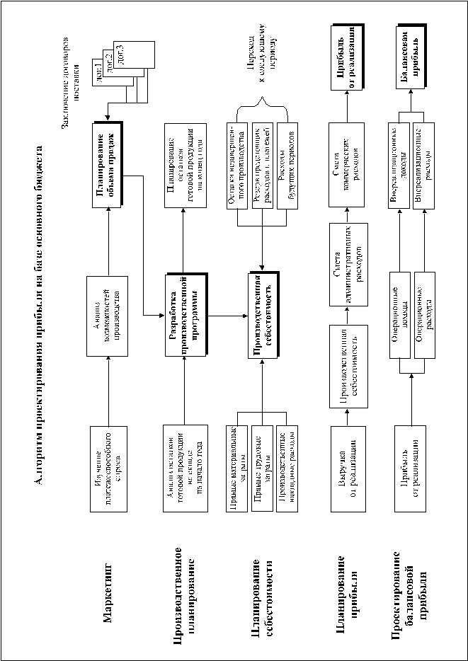 Результаты прогнозных расчетов переносятся в проект Отчета о прибылях и убытках. Затем может формироваться прогнозный баланс и, наконец, финансовый план. На рис.4.3. представлен алгоритм проектирования прибыли на основе бюджетирования.