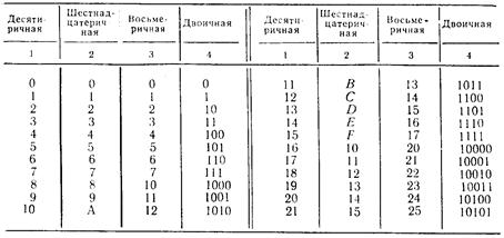 В табл. 1.1 для примера приведен натуральный ряд чисел в различных системах счисления.