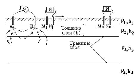 Г – генератор, И - измеритель, A,B,M,N – питающие и измерительные электроды,