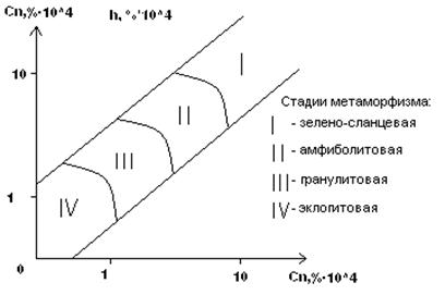 Рис. 3.6. Изменение естественной радиоактивности в зависимости от степени метаморфизма пород