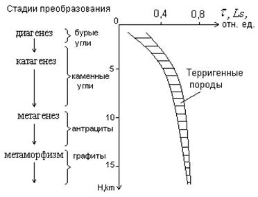 Рис. 3.11. Тенденция изменения τ и Ls в зависимости от стадий преобразования (окаменения) терригенных пород
