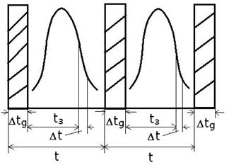 t - время следования импульсов нейтронов, Δtg – длительность нейтронных импульсов, Δt – окно временного анализатора, t3 – время задержки