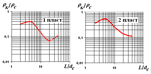 · пласт 1 - ρп/ρс = 0,5; ρ∆/ρс = 5; D/dc = 2; отсюда следует: ρп = 18,5 Ом*м,
