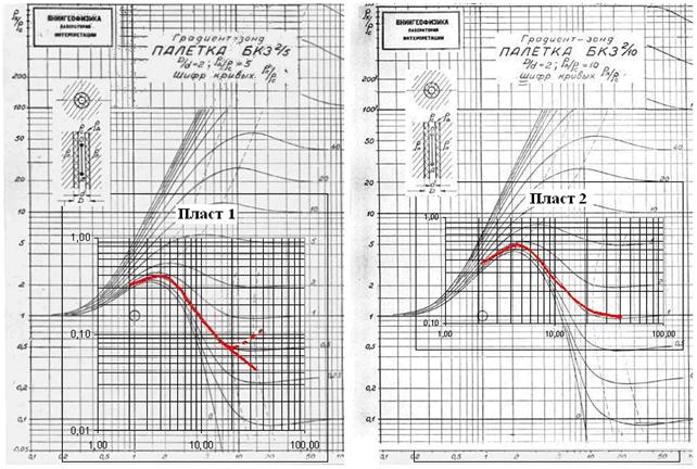 3) Сопоставлялись фактические кривые с теоретическими 2-х слойной палетки БКЗ и выполнялась оценка пластов на предмет проницаемости (рис.4.26).