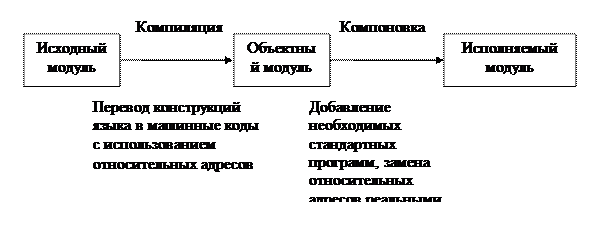 Объектный модуль – промежуточная программа, в которой конструкции исходного модуля переведены в машинные коды, но ещё не дополнены стандартными и служебными программами, необходимыми для её работы.