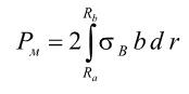 Усилие PyRb определяется по той же формуле, при определении Pм и Pуц интегрирование идет от радиуса Ri.