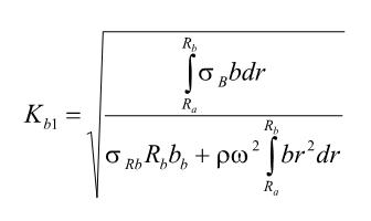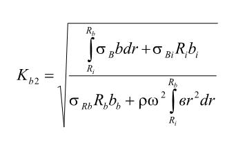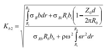 Индекс 2 в Кb2 означает, что коэффициент запаса по разрушающей частоте вращения определен для случая разрушения по цилиндрической поверхности. Для различных радиусов цилиндрических сечений значения этого коэффициента различны. Для оценки несущей способности диска необходимо найти наименьшее значение.