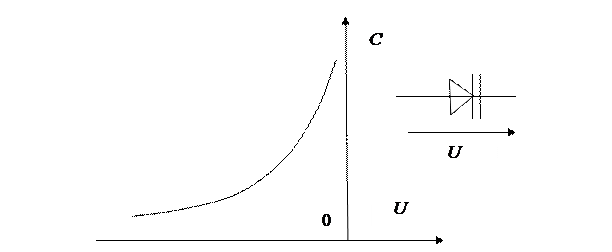 Варикапы – полупроводниковые диоды, предназначенные для использования их емкости. Варикап содержит p-n -переход, включенный в обратном направлении. Электрическая емкость закрытого перехода зависит от значения постоянного обратного напряжения (рис.3.8)