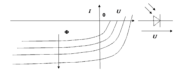 Фотодиоды – диоды, в которых при поглощении световых квантов образуются новые носители зарядов. Это приводит к изменению сопротивления диода и к появлению фотоэдс. На рис.3.10 приведены ВАХ фотодиода при разных значениях светового потока через прозрачное окно.