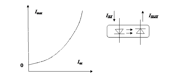 Излучение светодиода воспринимается фотодиодом диодной пары. Характеристикой оптрона является передаточная функция Iвых(Iвх), приведенная на рис. 3.11.