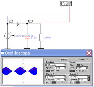 Детектирование АМ-сигнала производится амплитудными детекторами. На рис. 7.5 приведен пример demo7_3 с результатами детектирования АМ-сигнала.