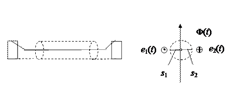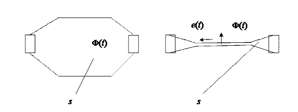 На рис. 7.6 прямоугольниками условно обозначены источник сигнала (слева) и приемник сигнала (справа), соединенные проводами. В замкнутом контуре, образованном проводами (в левой части рис.7.6), образуется ЭДС e (t) помехи, которая зависит от скорости и амплитуды изменения магнитного потока Φ(t):