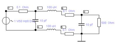 Рис.7.14. Сетевой фильтр и его АЧХ.