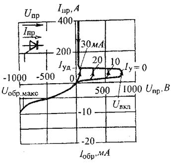 Рис. 8.15. Вольтамперные характеристики тиристора.
