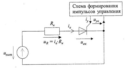 Рис. 8.16. Схема регулирования тока нагрузки тиристором.