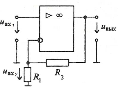 KU 1= U вых / U вх1 = (R 1 + R 2) / R 1 = 1 + R 2 / R 1