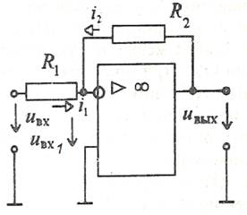I2 = Uвых /R2 = -I1, I1 = Uвх / R1.