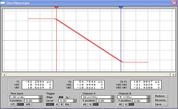Рис. 9.18. Передаточная характеристика ОУ с компенсацией напряжения смещения.