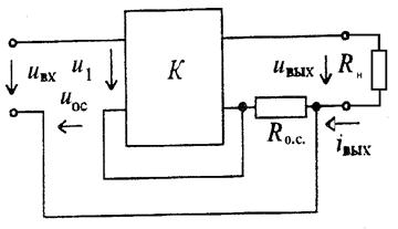 Рис.10.15. Структурная схема усилителя с ОС по напряжению.
