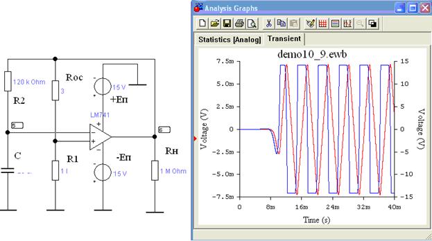 Рис.10.22. demo10_9. Мультивибратор на ОУ.