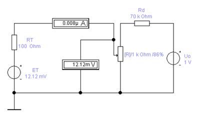 Рис.14.9.demo14_1. Компенсационный метод измерения ЭДС генераторного ИП (ЭДС ET и внутреннее сопротивление RT).