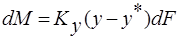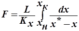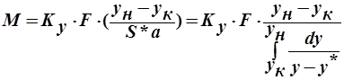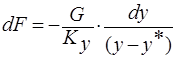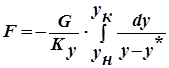Если равновесная кривая не является линейной, то средняя движущая сила вычисляется как средняя интегральная разность концентраций и определяется следующим образом. Запишем дифференциальное уравнение материального баланса для фазы G и уравнение массопередачи для элемента поверхности dF