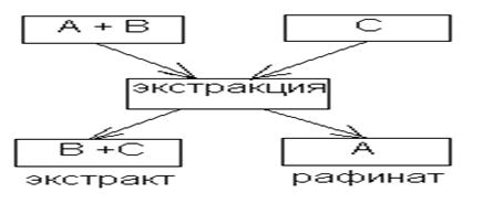 1. Смешение исходной смеси с экстрагентом. Исходная смесь состоит из целевого компонента В и растворителя А. Экстрагент - С. Растворимость В в С должна быть существенно больше, чем В в А, а взаимная растворимость А и С должна быть ничтожной.