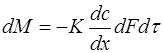 - количество вещества, переместившегося в твердом теле за счет массопроводности прямопропорционально градиенту концентрации, площади ┴ направлению потока вещества и времени. К - коэффициент массопроводности (
