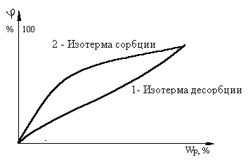 2) увлажнение - при РМ<РП. (Первый процесс называется десорбцией, второй – сорбцией влаги материалом).
