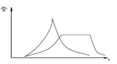 В начале скорость равна нулю (период индукции), затем максимальна и падает до 0(1) (при большой степени пересыщения). При наличии тормозящих кристаллизацию примесей период индукции возрастает, наблюдается период постоянной скорости (2).