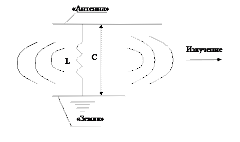 Для излучения электромагнитной энергии в эфир применяют открытый колебательный контур, в котором обкладки конденсатора выполняют в виде отдельных проводников, подвешенных над поверхностью земли, или одного проводника, поднятого над землей («антенна») и самой поверхности («заземление» или «земля»).