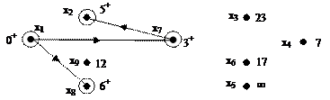 Шаг 2. G(p) = G(x2) = {х1, х3, х7, х9}. Только вершины х3 и х9 имеют временные пометки. Из (8) получим: l(х3) = min(¥,5++18) = 23, аналогично 1(х9) =12.