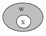 Дополнительным к множеству X по отношению к множеству W, если X Ì W, называется множество, состоящее из элементов W, не принадлежащих множеству X. Дополнительное множество обозначается:Zw(X) (рис. 1.4).