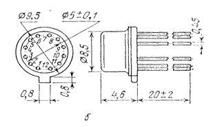 · металлостеклянный корпус типа ТО-5 диаметром 8,5 мм с 8 или 12 выводами;