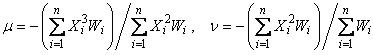 а коэффициенты μ и ν вычисляются по следующим формулам соответственно:
