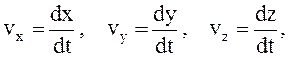 1. Проекции скорости на оси координат равны первым производным от соответствующих координат точки по времени:
