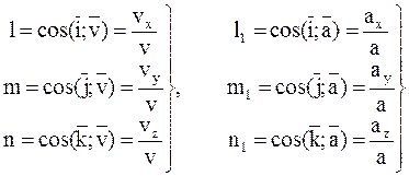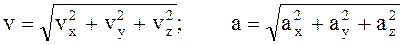 Величины (модули) скорости и ускорения в декартовой ортогональной системе координат определяют по формулам