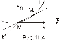называют естественными осями кривой L. Направление вектора скорости принимают за положительное направление касательной