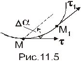 Радиусом кривизны «r» кривой L в точке М называют величину обратную ее кривизне в этой точке
