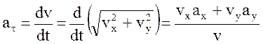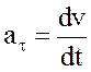 , Касательное ускорение (проекция ускорения точки на касательную) равно первой производной от величины скорости от времени: