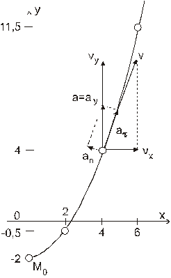 определить ее траекторию, положение, скорость, ускорение, касательное и нормальное ускорения, радиус кривизны траектории в заданное время t1 = 2c.