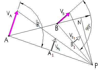 здесь т. Р − мгновенный центр скоростей, АР и ВР − расстояния от точек до мгновенного центра скоростей.