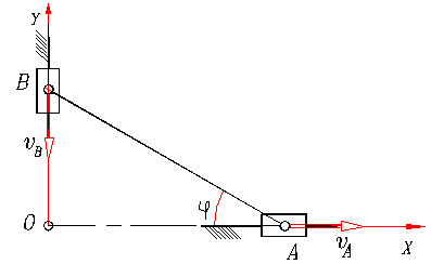 OX и OY. Скорость т. А − vА задана. Найти скорость точки В.