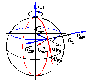 Направление ускорений при движении точки по поверхности шара, вращающегося вокруг неподвижной оси, показано на рис.