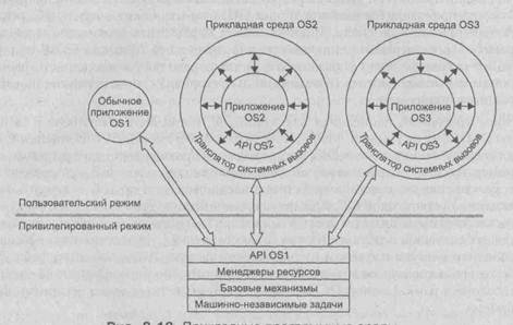 Один из наиболее очевидных вариантов реализации множественных прикладных сред основывается на стандартной многоуровневой структуре ОС и обеспечивает трансляцию системных вызовов.