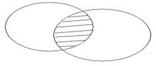 Пересечением множеств А и В, у которых есть общие элементы, будет заштрихованная область.